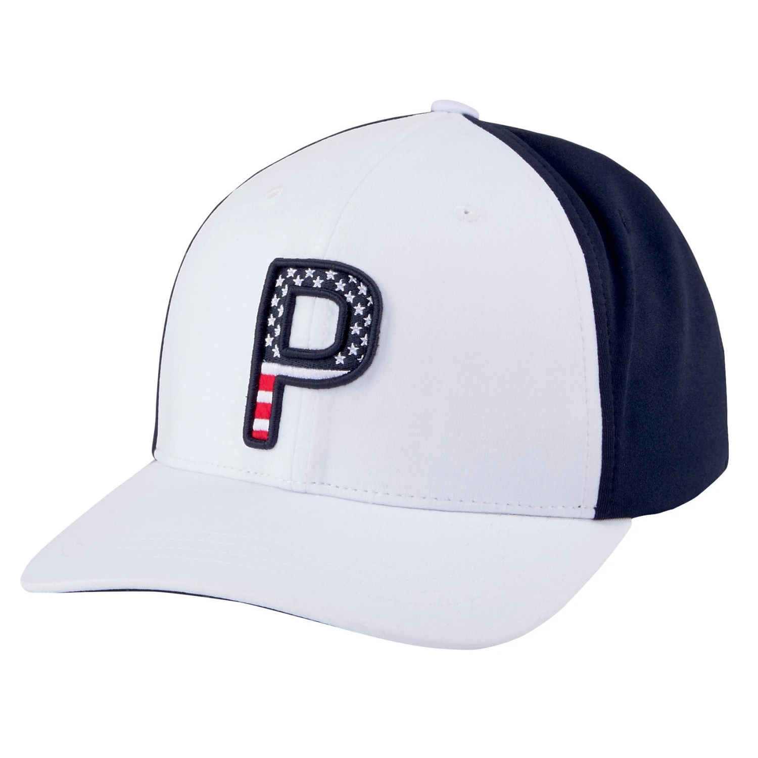 Add a Rickie Fowler favorite to your golf wardrobe with the Puma Pars and Stripes Snapback Golf Hat. The Pars and Stripes features a 3D embroidered P logo on the front and 2D embroidered back cat log that will add a touch of style to your outfit and the 110 Flexfit tech moisture wicking sweatband will pull sweat away from the body to keep you dry and comfortable during your round.